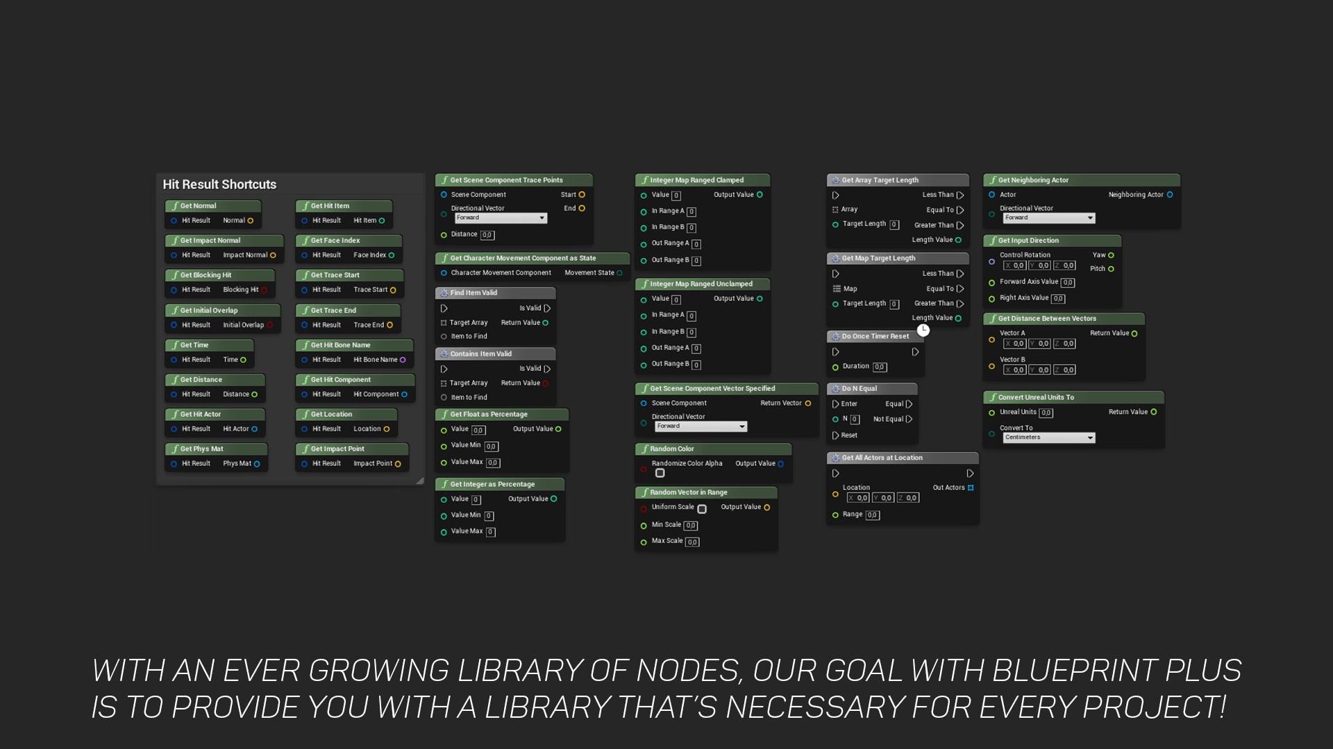 Expansive and efficient collection of carefully constructed blueprint nodes