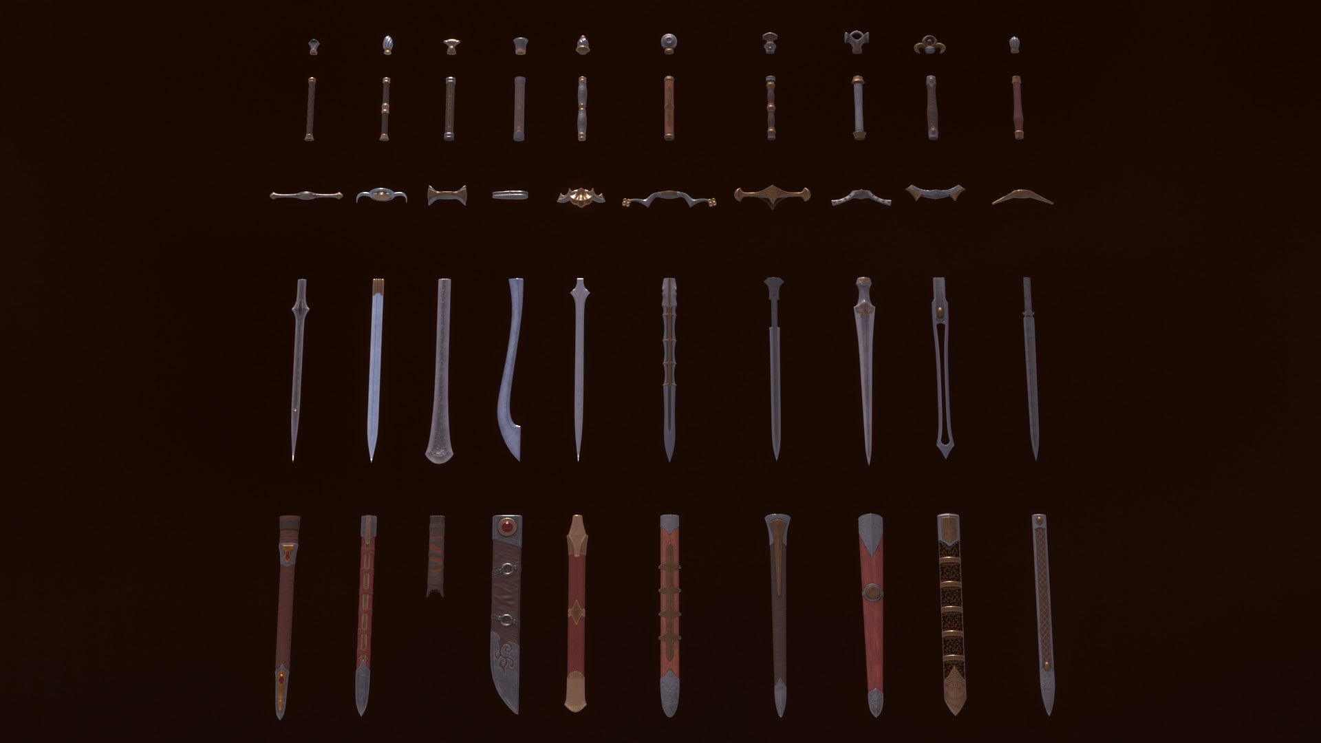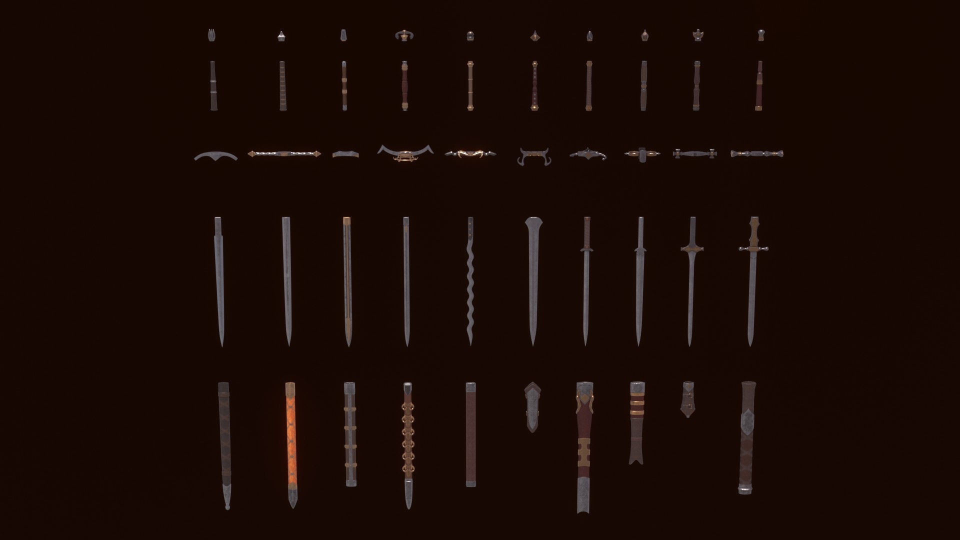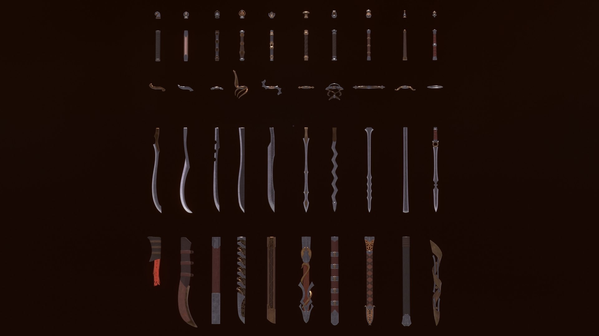Large modular set of bladed weapons. A huge number of combinations.