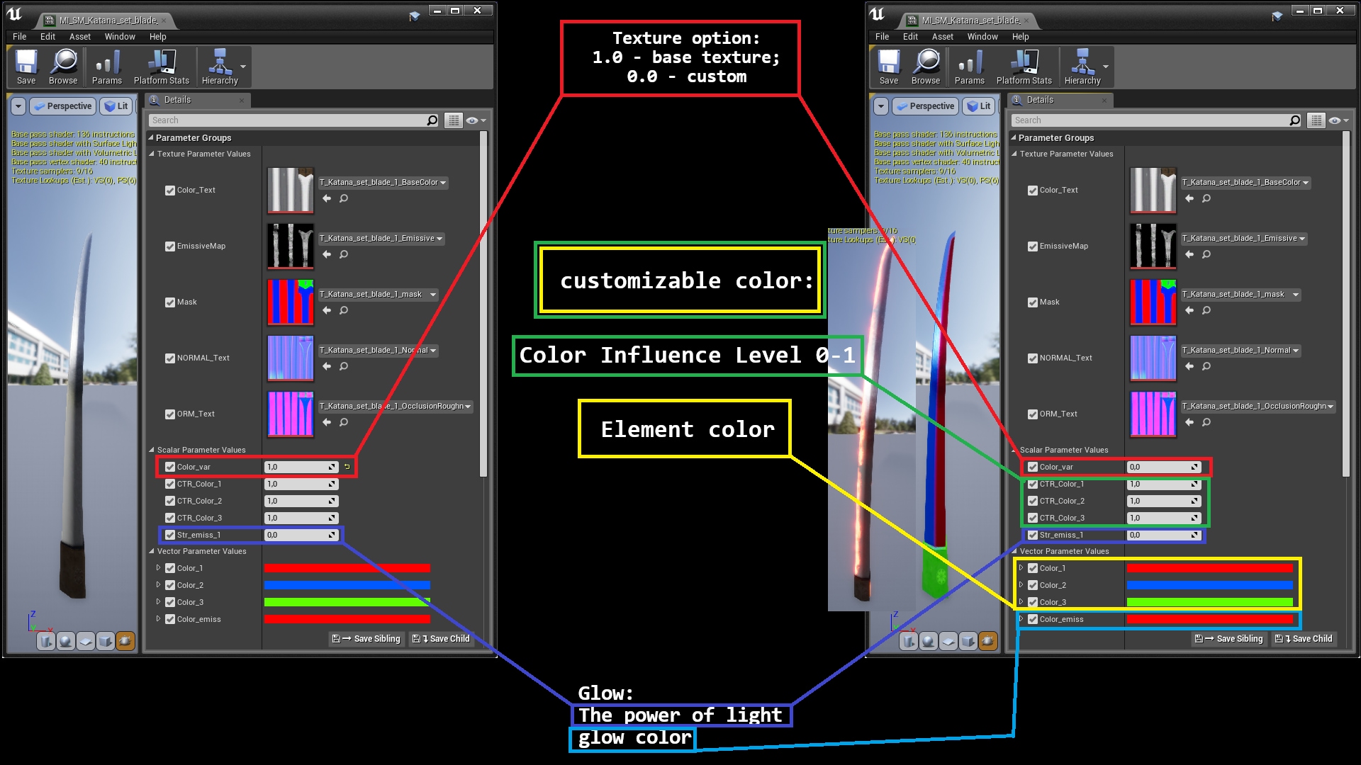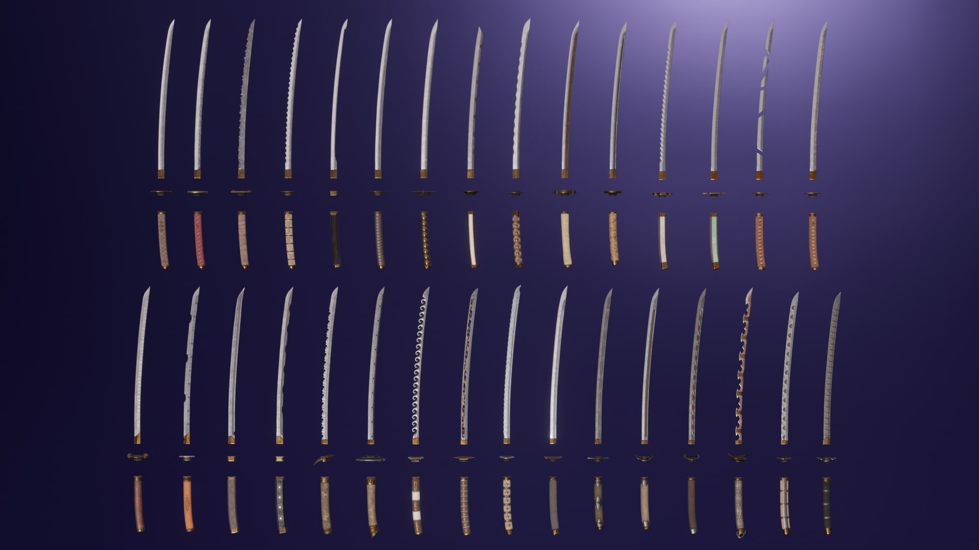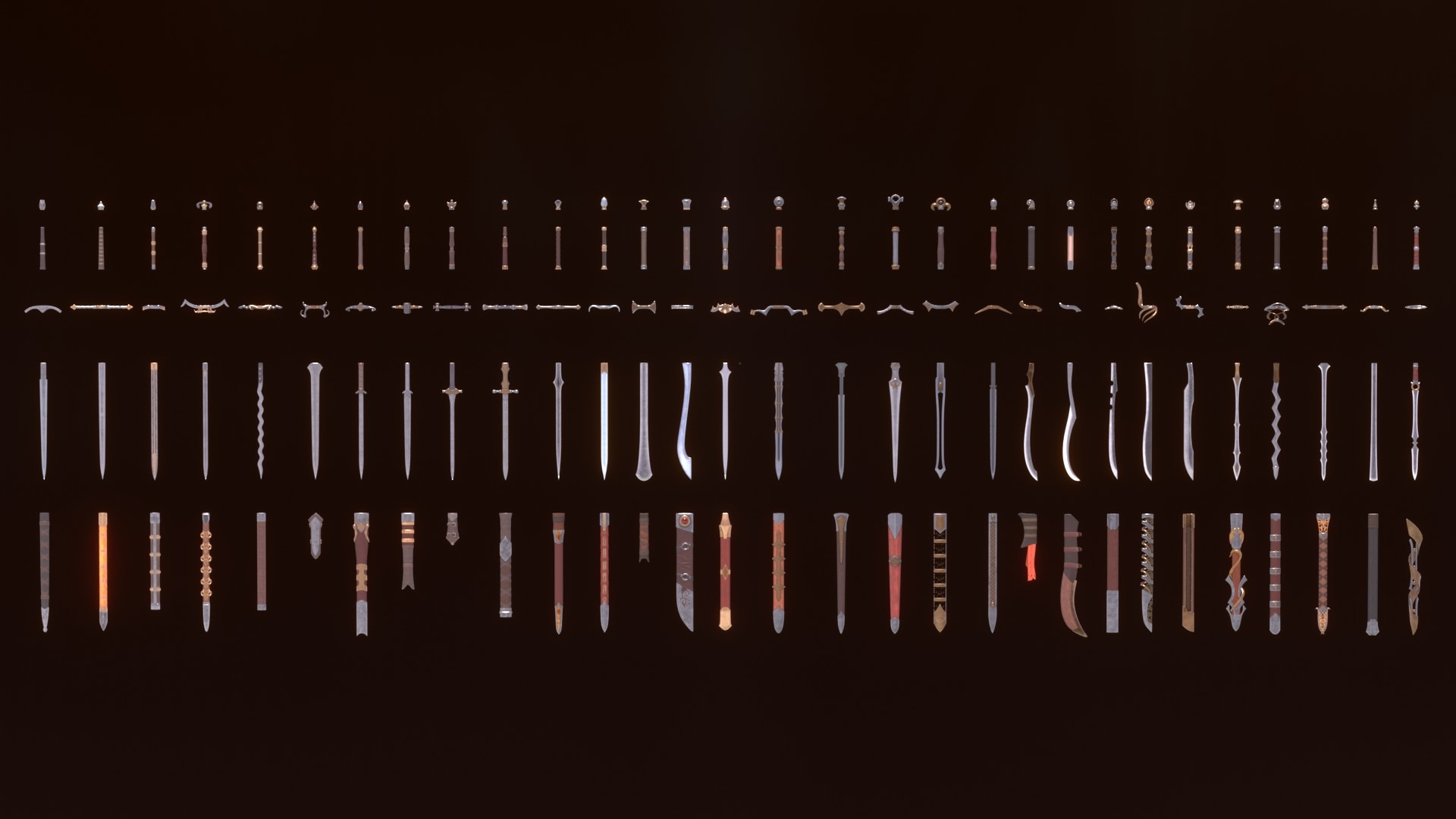 Large modular set of bladed weapons. A huge number of combinations.